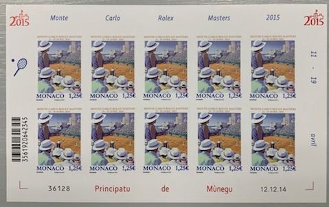 Monaco 2015 - Tennis, Rolex, Monte-Carlo Masters, sheet of 10, complete, imperforate, VF and rare - Yvert N° 2961