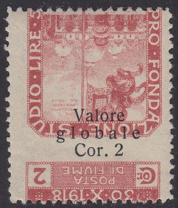 2 bruinroze kronen met sterk verschoven horizontale inkeping bovenaan en omgekeerde opdruk
