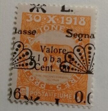 Fiume 1921 portokosten met opdruk zwaar horizontaal verschoven.