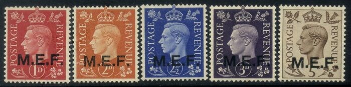 Groot-Brittannië - bezetting van Italiaanse koloniën (1942-1949) 1945 - Occupazione Inglese. M.E.F. 5 valori tiratura del Cairo. Splendida serie molto fresca. Certificata - Sassone N. 1/5
