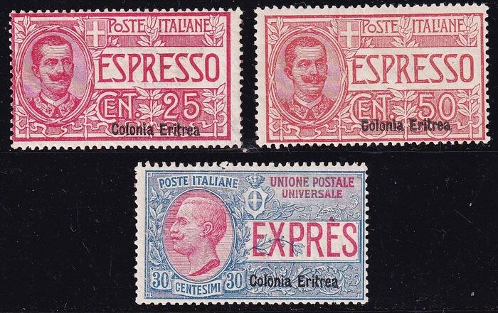 Italiaans Eritrea 1907 - Vittorio Emanuele III, Espressi, 3 valori - sassone 1/3