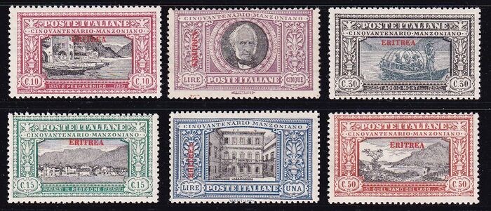 Italiaans Eritrea 1924 - Alessandro Manzoni, complete set of 6 values. With certificate. - sassone 71/76