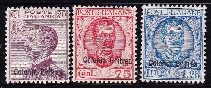 Italiaans Eritrea 1928 - Victor Emmanuel III, 3 values with very good centring. - sassone 123-125-126