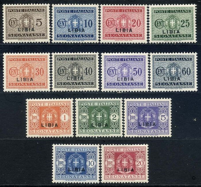 Italiaans Libië 1915 - Segnatasse, I emissione, serie completa di 13 valori ottimamente centrati - Sassone N. T 12/24