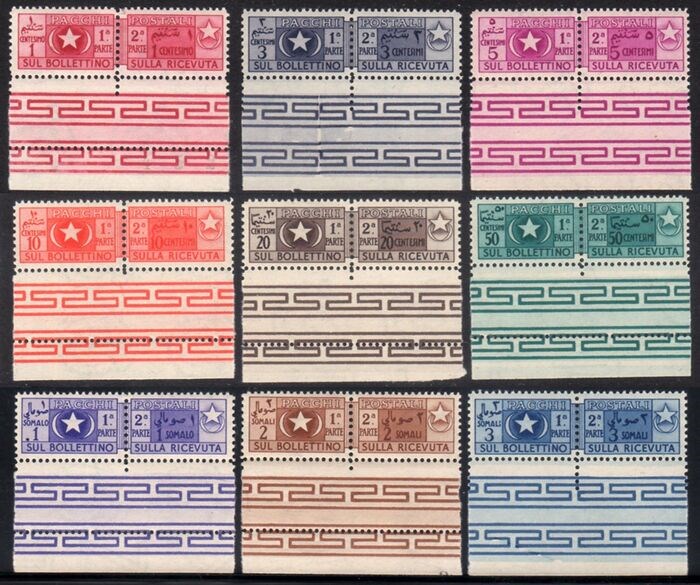 Somalië AFIS (Italian Trusteeship) 1950 - Zeldzame set pakketpostzegels (9 waarden), perfecte nieuwstaat met volle gom en rand van het vel (zoals te zien op de afbeeldingen). Extreem fijn.