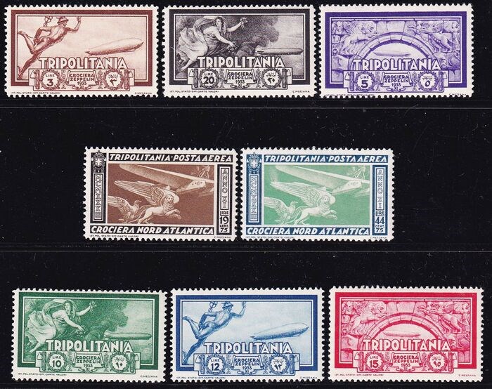 Italiaans Tripolitanië 1933 - Zeppelin and Italo Balbo cruises, 8 values - sassone 22/29