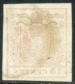 Italiaanse oude staten - Lombardije Venetië 1850 - 15 cents with print offset on the back. Beautiful variety - Sassone N. 6l