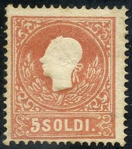 Italiaanse oude staten - Lombardije Venetië 1858 - Franz Joseph, 5 soldi red, 2nd type. Intact. With certificate - Sassone N. 30