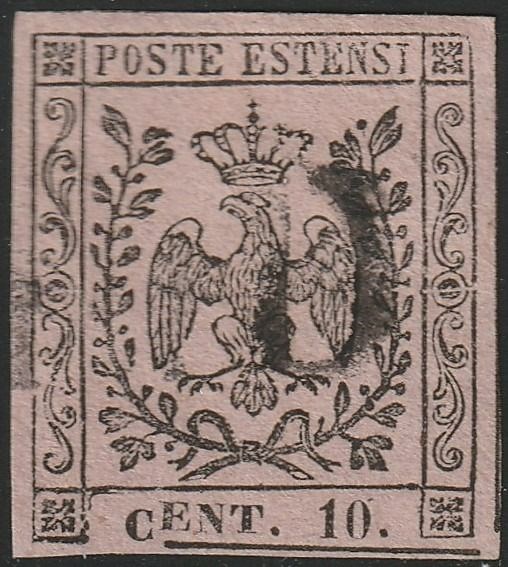 Italiaanse oude staten - Modena 1852 - 10 c. pink, variety C of CENT strongly shifted to the bottom, very rare, certified - Sassone n.9c