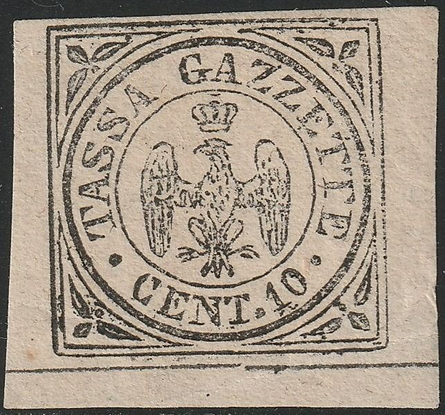Italiaanse oude staten - Modena 1852 - Segnatasse x Giornali 10 c. nero Aquilotto ampi margini integro lusso Certificato - Sassone n.5