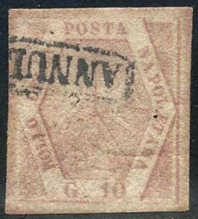 Italiaanse oude staten - Napels 1858 - 10 grana pink carmine, 2nd plate with monogram watermark. With expert’s report - Sassone N. 11i