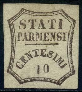 Italiaanse oude staten - Parma 1859 - Provisional Government, 10 cents brown with inverted figure ‘1’. - Sassone N. 14b
