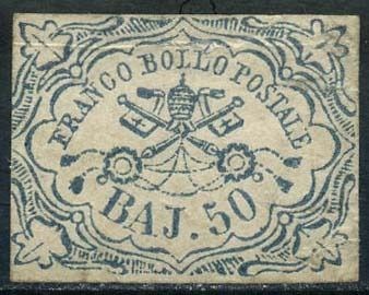 Italiaanse oude staten - Pauselijke Staat 1852 - 50 baj azure. - Sassone N. 10