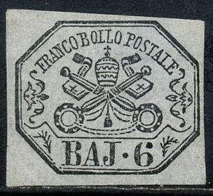 Italiaanse oude staten - Pauselijke Staat 1852 - 6 baiocchi grey lilac. - Sassone N. 7A