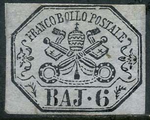 Italiaanse oude staten - Pauselijke Staat 1852 - 6 baj grey lilac. - Sassone N. 7A