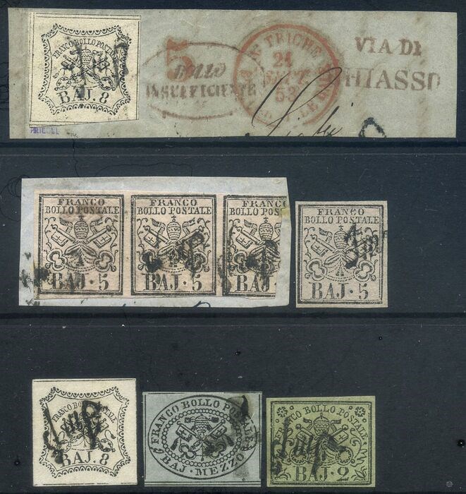 Italiaanse oude staten - Pauselijke Staat 1852 - 7 esemplari con annullo "imp.e" (impostazione). Interessanti