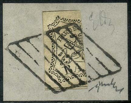 Italiaanse oude staten - Pauselijke Staat 1852 - 8 baj vertically split for 4 baj. With certificate - Sassone N. 8
