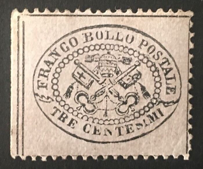 Italiaanse oude staten - Pauselijke Staat - 3 cent. grey-pink, beautiful conditions, certified. - Sassone n. 23