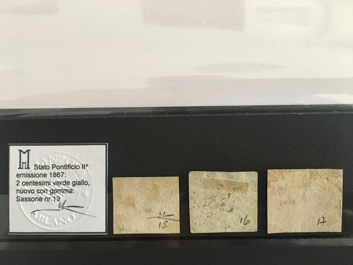 Pauselijke Staat, tweede emissie, Sassone n. 13, 16, 17, 18, 19, 20 ondertekend en gecertificeerd door M. Manzoni