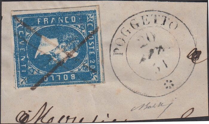 Ik geef c. 20 lichtblauw met penstempel van POGGETTO 20/4/51