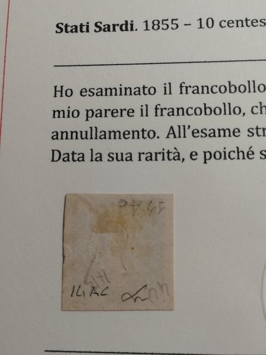Sardijnse Staten 1855 10 cent Bruno Porpora (Sassone Oude Sardijnse Staten 14BC) 1859 kleur gebruikt met brede marges.