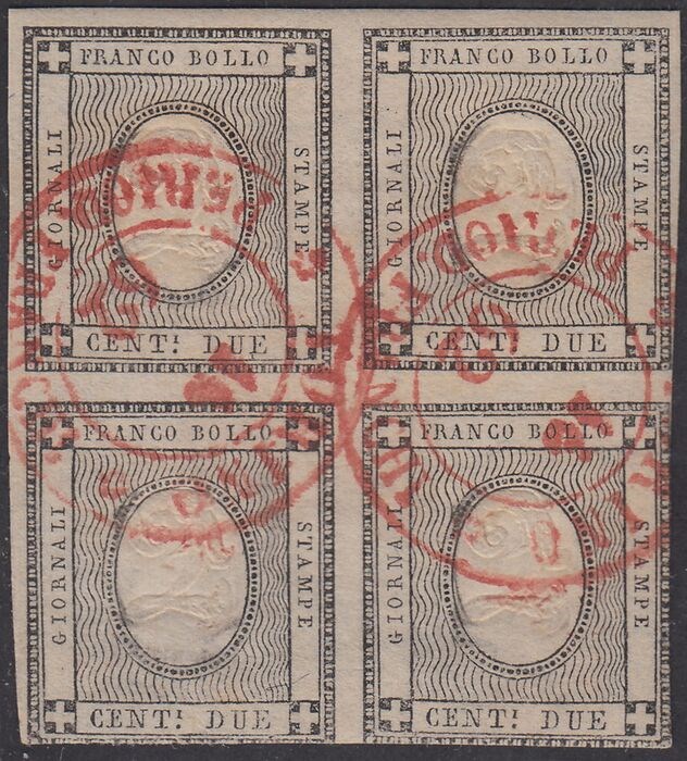 Gebruikt met stempels in rode inkt "TORINO PERIODIDI FRANCHI" d.c. zonder de MAAND.