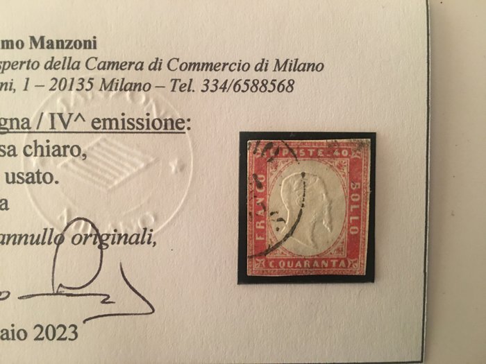 Italiaanse oude staten - Sardinië - IV emissione - 40 cent rosa chiaro - Sassone n. 17Ea