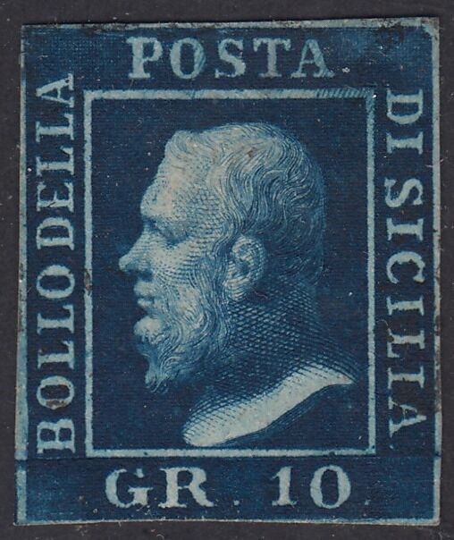 Beeltenis van Ferdinand II van Bourbon, gr. 10 donkerblauwe kaart van Napels positie 4 RETOUCH