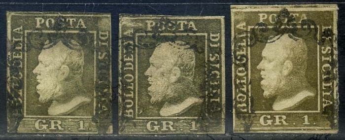 Italiaanse oude staten - Sicilië 1859 - Ferdinand II, 1 grano 2nd plate, Naples paper. 3 colours. - Sassone N. 4b/e