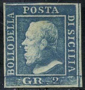 Italiaanse oude staten - Sicilië 1859 - Ferdinand II, 2 grana azure, 1st plate position 31, intact. - Sassone N. 6