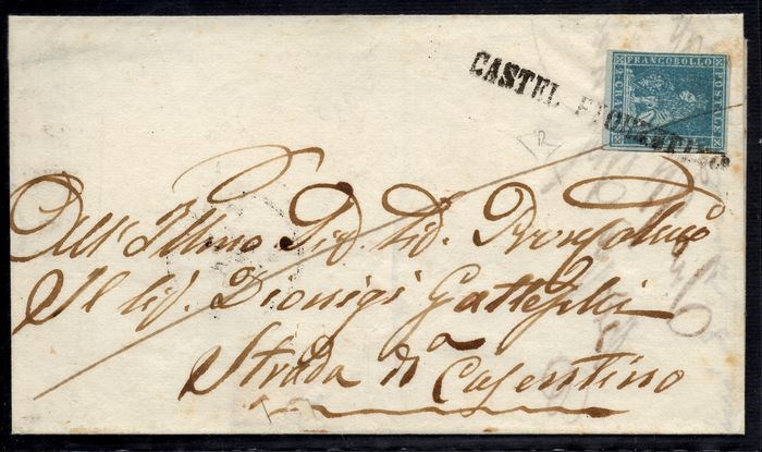 Mooie en zeldzame envelop met "Castel Fiorentino" stempel in rechte blokletters, Pt R1, op 2 gekken, geadresseerd aan Strada.