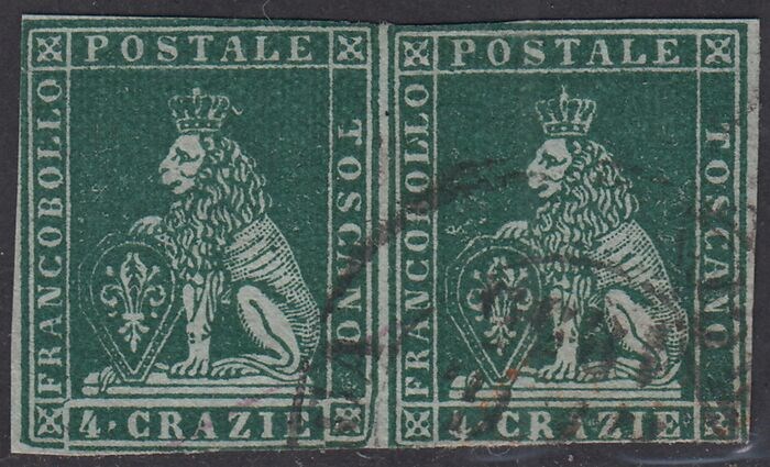 1e nummer, 4 groene crazies op grijs papier en horizontaal paar kroonwatermerken