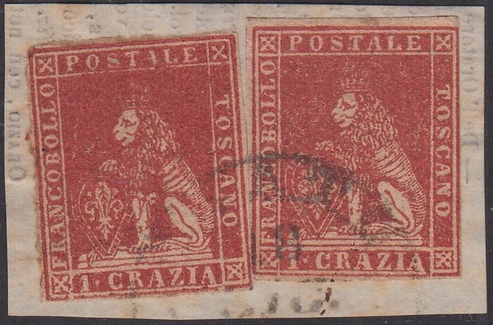 II nummer 1 crazia carminio op wit papier en watermerk golvende lijnen, twee exemplaren