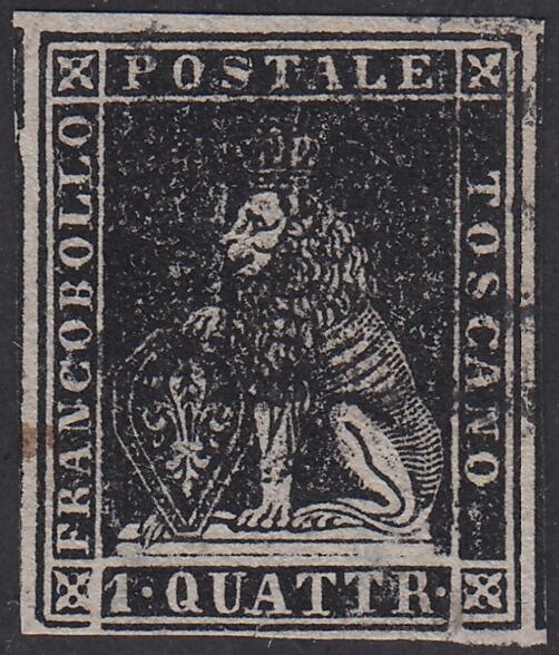 II uitgave 1 quattrino zwart op wit papier en watermerk met golvende lijnen