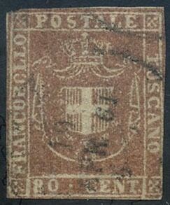 Italiaanse oude staten - Toscane 1860 - Governo Provvisorio 80 centesimi carnicino. Certificato - Sassone N. 22