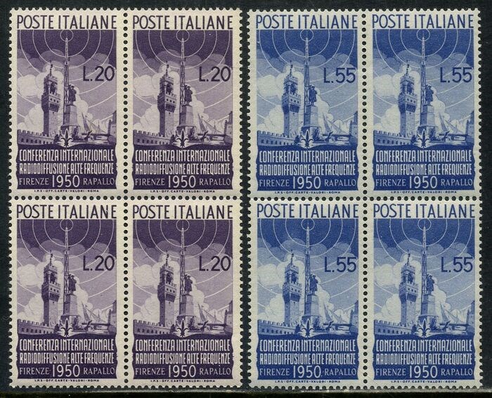 Italiaanse Republiek 1950 - ‘Radiodiffusione’, 2 values in block of four. - Sassone 623/624