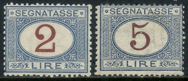 Italië 1903 - Postage due, 2 and 5 lire, set of 2 values. With certificate. - Sassone T 29/30