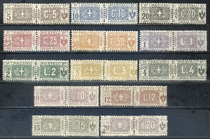 Italië 1914/1922 - Postal parcels with knot in the centre, set of 13 values. With certificate. - Sassone N. 7/19
