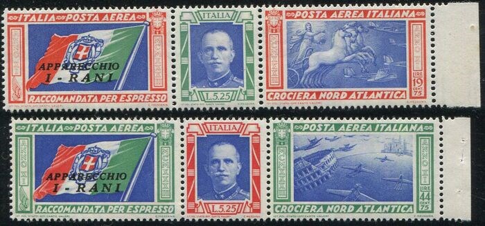 Italië 1933 - Trittici Crociera Nord Atlantica serie con sigla I-RANI. Rari con filigrana lettere - Sassone A51/52
