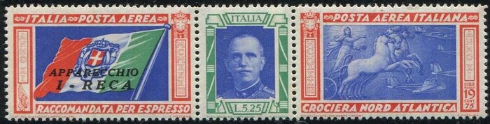 Italië 1933 - Trittico Crociera Nord Atlantica L. 5,25 + 19,75 con sigla I-RECA - Sassone A51