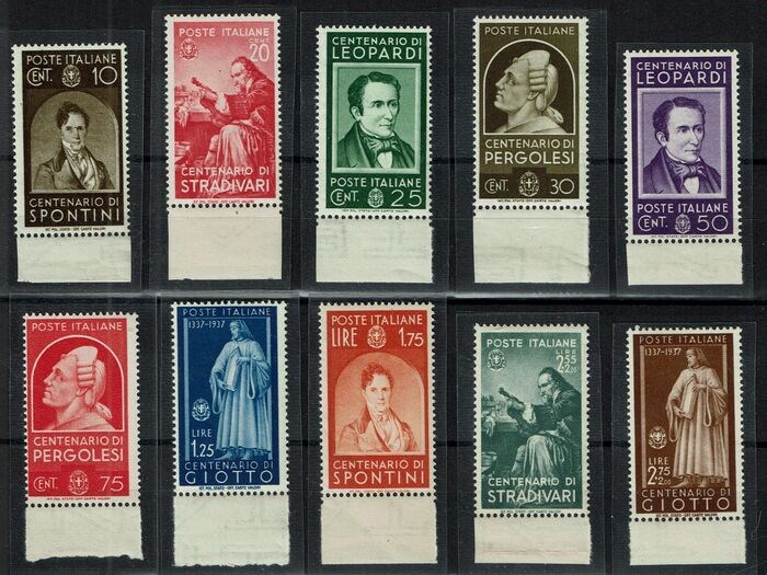 Koninkrijk Italië. 1937 illustere mannen, complete serie 10 bladrandwaarden, Sassone 426/435. Nieuw origineel rubber intact. mnh extensie