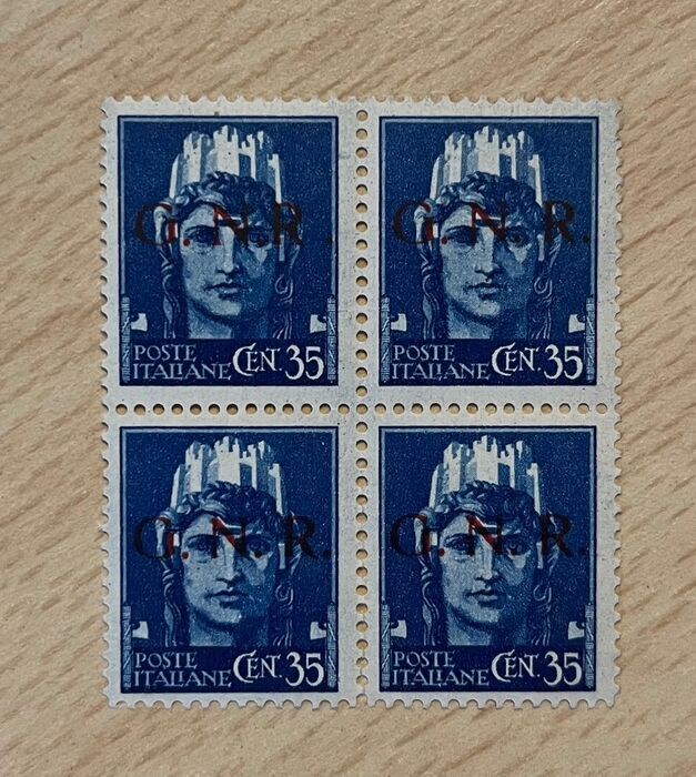 Italië 1943 - Social Republic, 35 cents, block of 4. Variety of R next to N. - Sass. 476/I