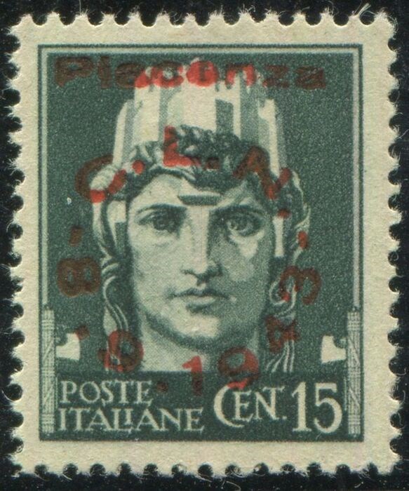 Italië 1945 - CLN Piacenza. ‘Imperiale’ 15 cents overprinted. Issue of 100 pieces. With certificate.