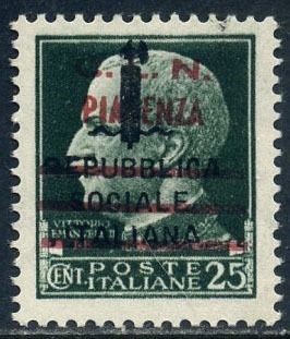 Italië 1945 - CLN Piacenza. ‘Imperiale’ 25 cents overprinted. Issue of 100 pieces. With certificate.