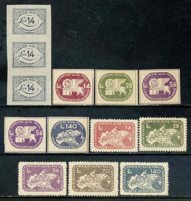 Italië 1945 - Lieutenancy, Corrieri Alta Italia (Coralit), 3 issues, 13 values - Sassone N. 1-3/12