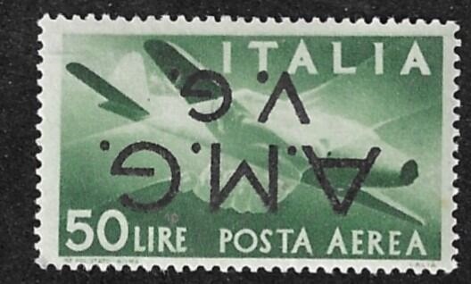 AMG V.G. 50 lire luchtpost ondersteboven opdruk