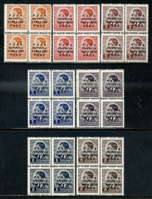 Italië - bezetting van Fiume-Kupa (1941-1942) 1941/1953 - Set in block of four, inverted overprint. - Sassone 2a/10a