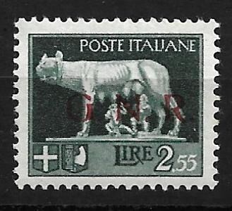 1943 lire 2,55 grijsgroen met opdruk G.N.R. editie van Brescia. Raybaudi-signatuur en classificatie.