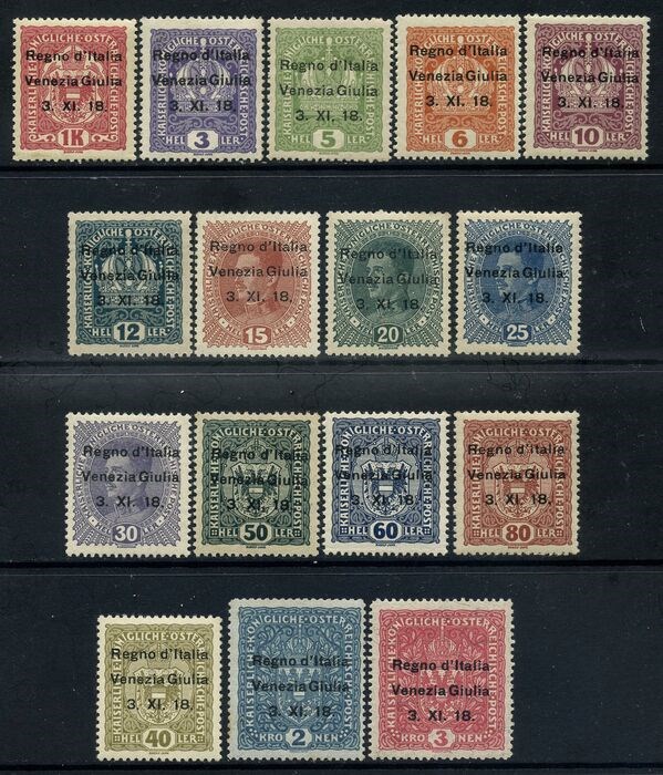 Italië - Julian Venetië 1918 - First issue, 16 values. With certificate. - Sassone 1/16