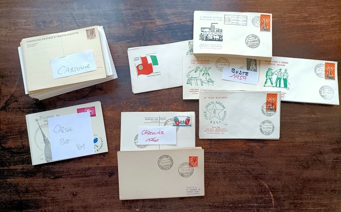 Duizenden poststukken uit de Republiek, San Marino en het Vaticaan, FDC's, ansichtkaarten, aerogrammen, postkaartjes enz., reisden en nieuw. met de aanwezigheid van herhalingen, veel materiaal, alles in een doos, totaal gewicht kg. 18.